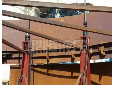 胀圈采用25c型槽钢滚弧后对扣焊接,胀圈的外弧应与罐壁的内弧半径一致。胀圈分段制作,通过32t千斤顶胀紧在罐壁板内侧下部,在犯t千斤顶处和每个提升支柱的两侧胀圈上,均需加设龙门板防止胀圈扭曲和翻转。