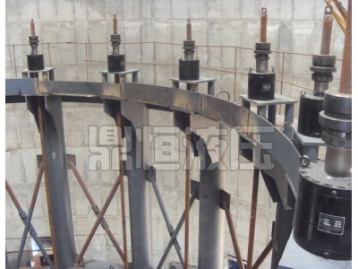 液压顶升设备及倒装工艺是利用液压传动原理与建筑滑模用提升设备相结合,是新的大型储罐液压提升设备,形成的一种新的储罐倒装工艺方法。液压提升设备是用刚性顶举件作为工作装置,通过顶部托座或底部托爪在小行程内顶升重物。